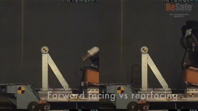 รอบนี้เรามาดูกันบางว่า ถ้าเกิดการชน เมื่อมีเด็กนั่งอยู่บนคารืซีท แต่เป็นการชนจากทางด้านหน้า และ การโดนชนจากด้านข้าง โดยเด็กนั่งคาร์ซีท จะมีภาพเป็นอย่างไร