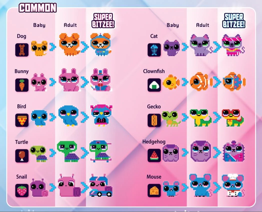 ไม่ซ้ำกันในแต่ละตัว ทำให้คุณเล่น บิตซี่ ได้เป็นเวลานาน แต่ระวังนะ หากคุณไม่สนใจใยดี ปล่อยให้สัตว์อยู่แบบไม่มีคุณภาพ ไม่ให้อาหาร