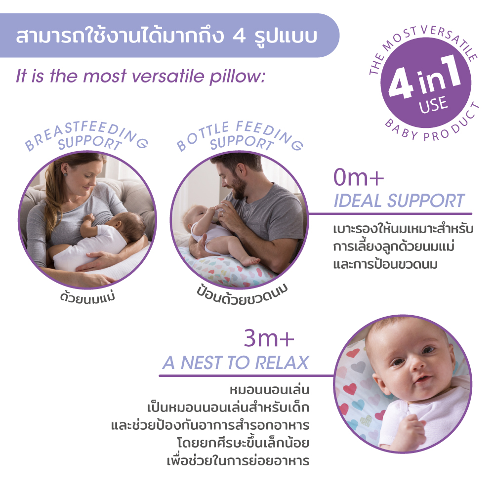 เป็นหมอนนอนเล่นสำหรับเด็ก และช่วยป้องกันอาการสำรอกอาหารโดยยกศีรษะขึ้นเล็กน้อยเพื่อช่วยในการย่อยอาหาร
