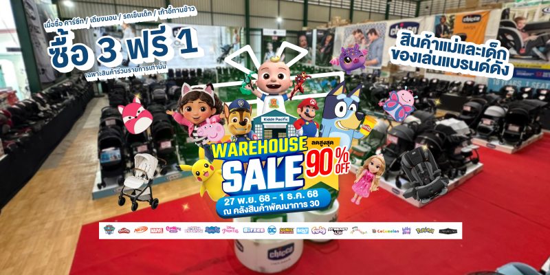 กลับมาอีกครั้ง พร้อมมอบส่วนลดที่ร้อนแรงที่สุดในรอบปี สูงสุดถึง 90%! สำหรับคุณพ่อคุณแม่ที่กำลังมองหาสินค้าคุณภาพดีจากแบรนด์ดังระดับโลก นี่คือโอกาสทองที่คุณไม่ควรพลาด! คุณพ่อคุณแม่เตรียมตัวให้พร้อม! Kiddo Pacific Warehouse Sale 2025 มหกรรมลดกระหน่ำสินค้าเด็กครั้งยิ่งใหญ่กลับมาอีกครั้งกับโปรแรงแห่งปี ที่คุณพ่อคุณแม่ไม่ควรพลาด พบกับสินค้าสำหรับเด็กครบครัน ทั้งของใช้เด็กแรกเกิด เสื้อผ้าเด็ก ของเล่นเสริมพัฒนาการ ไปจนถึงสินค้าแม่และเด็ก ของเล่นเด็กเล็ก เด็กโตจากแบรนด์ชั้นนำ ลดสูงสุดถึง 90% ตั้งแต่วันที่ 27 พฤศจิกายน – 1 ธันวาคม 2568 นี้