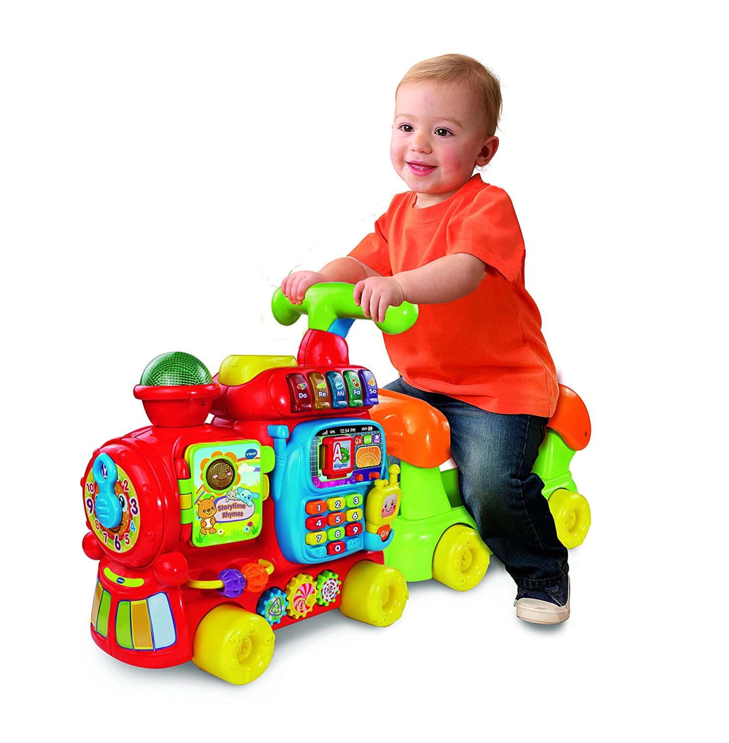 • สามารถปรับรูปแบบการเล่นได้ 4 แบบ: นั่งเล่นกับพื้น, รถขาไถ, ของเล่นหัดเดิน และรถเข็นลากของเล่นขนาดเล็ก