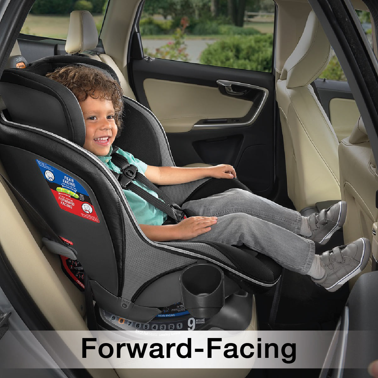 - ใหม่! พื้นที่วางขาเพิ่มขึ้น 25% สำหรับโหมดหันหน้าไปด้านหลัง และพื้นที่รองรับน่องเด็กสำหรับโหมดหันไปข้างหน้า