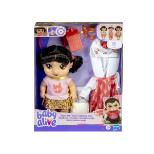 3 SUPER CUTE LOOKS: The Baby Alive doll clothes include her daytime shirt and skirt, superhero mask and cape costume, socks, and cat-themed pajamas for nighttime. Mix and match the pieces for more fun
