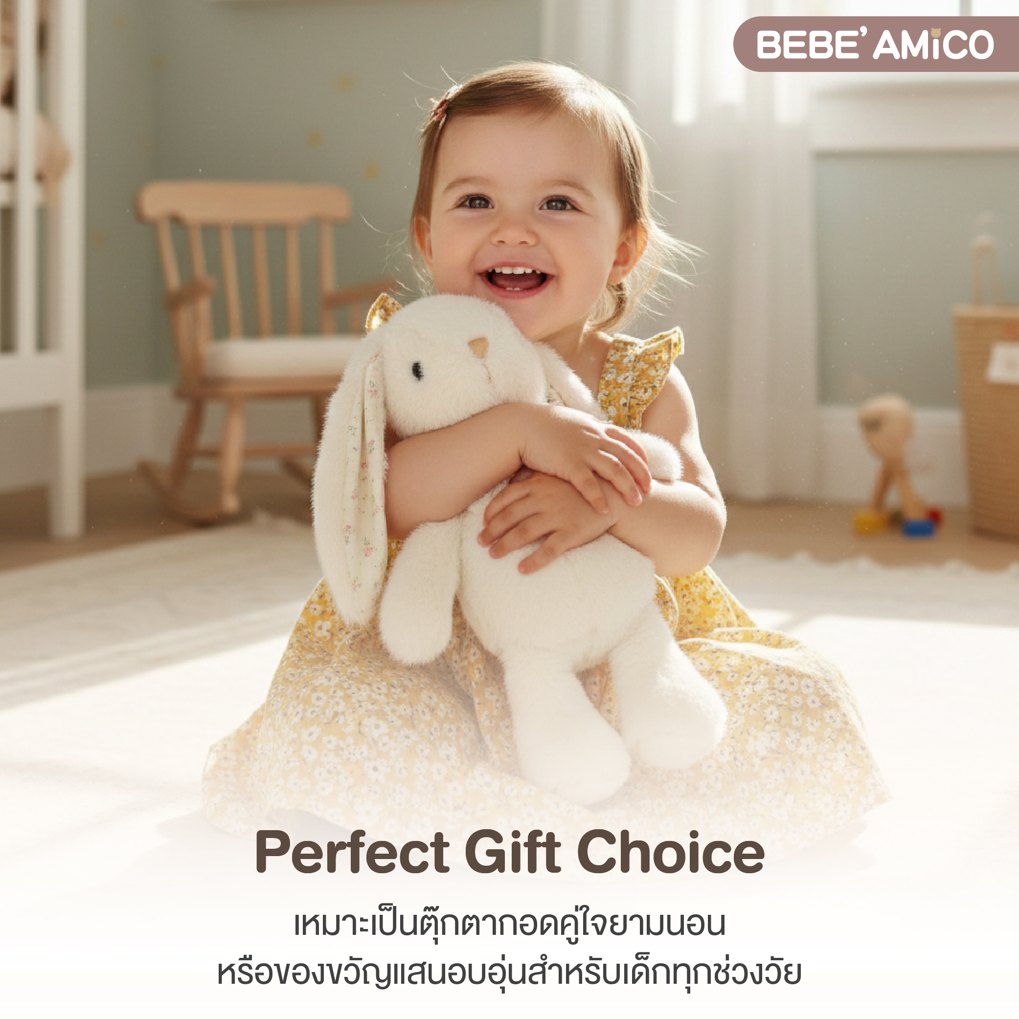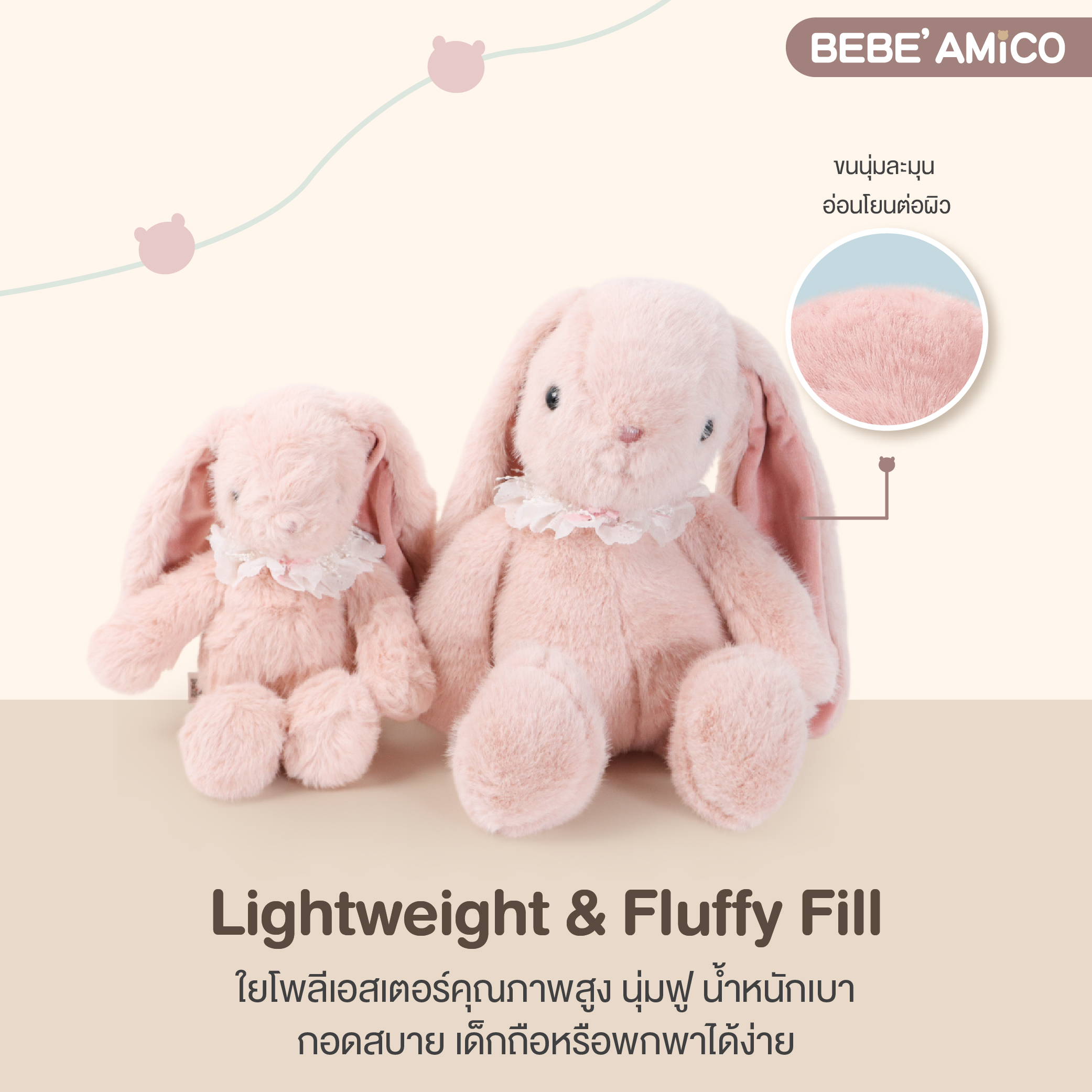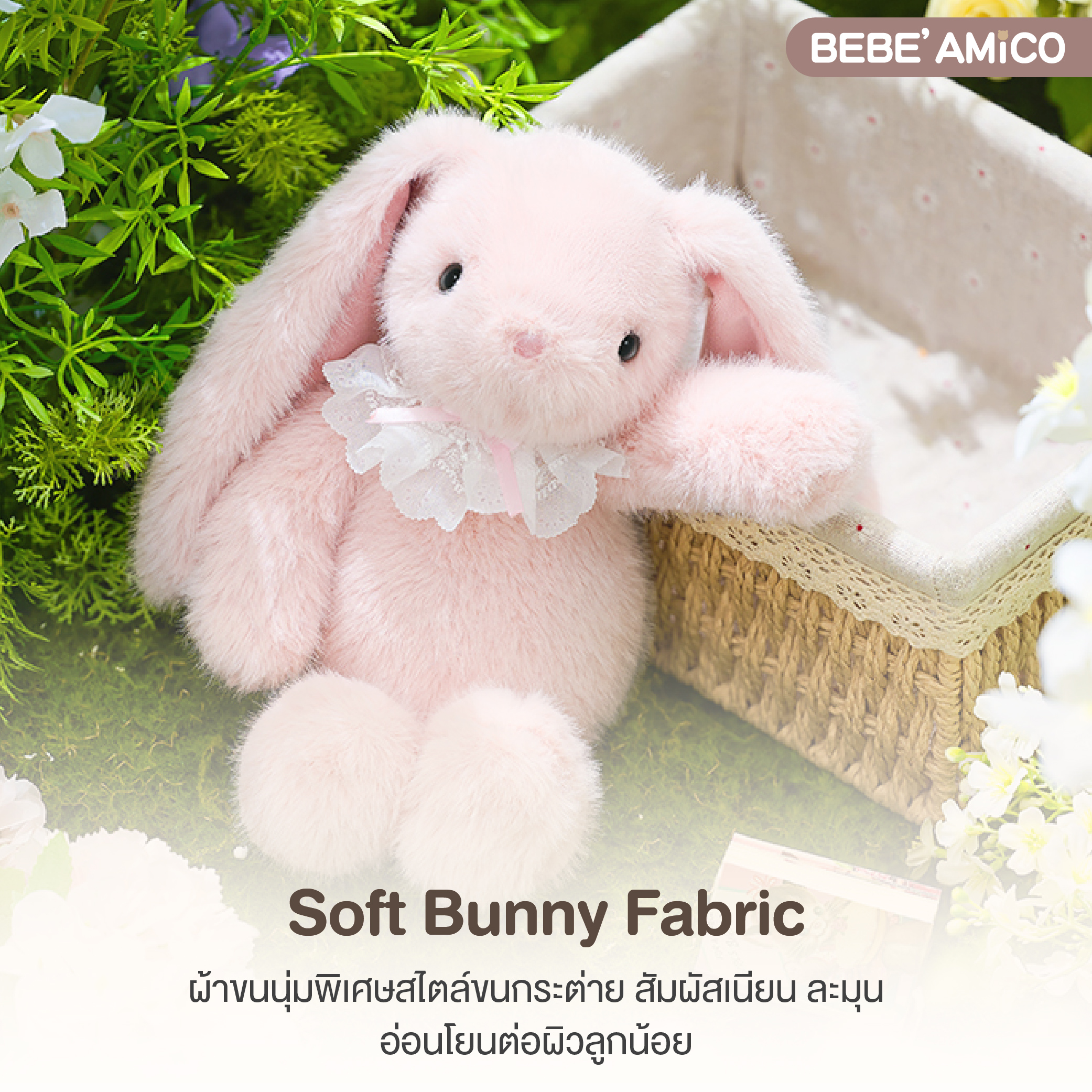 ตุ๊กตากระต่ายขนนุ่มแสนน่ารัก ที่ออกแบบมาเพื่อมอบความอบอุ่น ความผ่อนคลาย และความสบายใจให้กับลูกน้อย