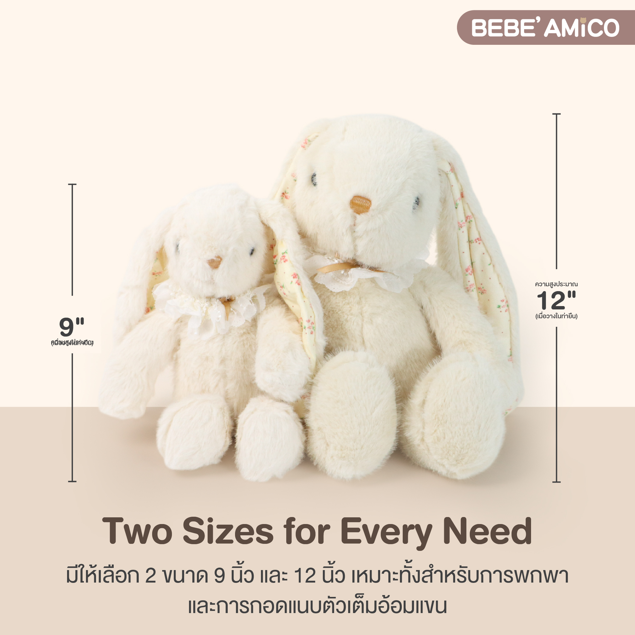 BEBE AMICO 9IN RABBIT COLLAR - BEIGE ตุ๊กตากระต่าย - Kiddo Pacific