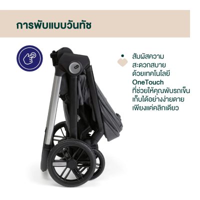•OneTouch Technology: ด้วยเทคโนโลยี OneTouch สามารถพับรถเข็นด้วยการเคลื่อนไหวเพียงหนึ่งครั้ง ทำให้พ่อแม่มีมือว่าง หรือสามารถอุ้มลูกได้เพียงแค่กดปุ่มที่ด้านหลังของที่นั่ง รถเข็นจะพับตัวเองโดยไม่คาดคิด! Bellagio เป็นรถเข็นโมดูลาร์รุ่นแรกที่มีระบบพับตัวเองทั้งสองทิศทาง เมื่อพับแล้วสามารถยืนได้เองและมีที่จับสะดวกในการถือ