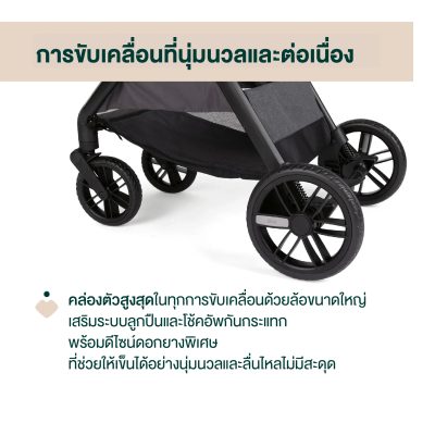 •การขับขี่ที่น่าพอใจ: มีกลไกที่ช่วยให้การขับขี่มีประสิทธิภาพสูง ล้อขนาดใหญ่ที่มีลูกปืนและระบบกันสะเทือนช่วยให้การขับขี่นุ่มนวลและมั่นคงบนทุกพื้นผิว ลายล้อพิเศษช่วยลดการสั่นสะเทือน ทั้งสำหรับเด็กที่นั่งและพ่อแม่ที่ขับขี่