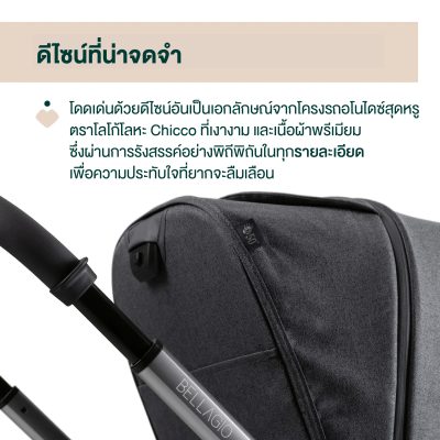 •ดีไซน์ที่น่าประทับใจ: Bellagio มาพร้อมกับดีไซน์ที่น่าจดจำ ตั้งแต่ท่ออลูมิเนียมอะโนไดซ์หรูหราไปจนถึงโลโก้ Chicco ที่มีความเงางาม และผ้าหุ้มที่ทันสมัย ทุกๆ รายละเอียดถูกออกแบบมาอย่างพิถีพิถันเพื่อสร้างความประทับใจในทุกๆ ครั้งที่มองเห็น