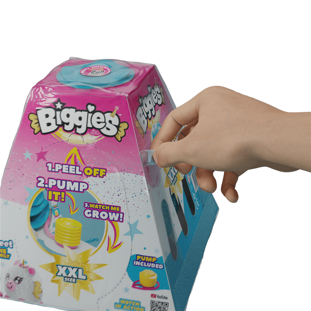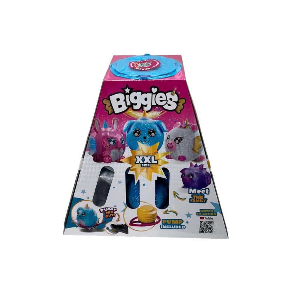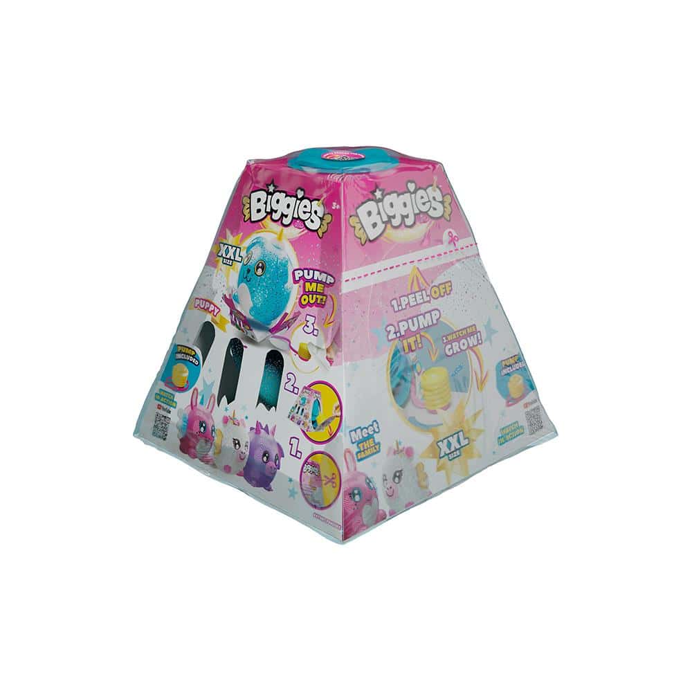 – Collect all 4 fantasy inspired characters! Dog , Rabbit , Unicorn , Dragon- Inflate your Biggies character up x10 it’s size!- Soft and squishy characters are perfect for all the family!- Step on pump let’s funn