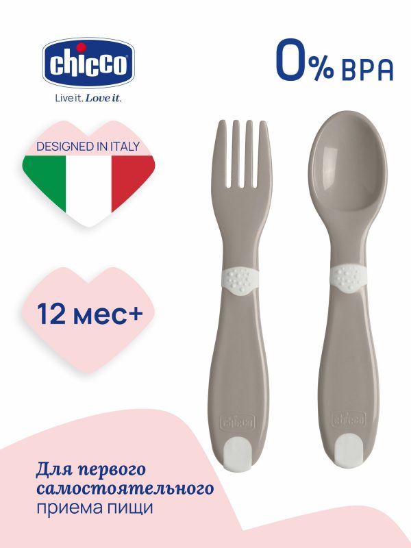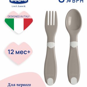 🍴CHICCO First Cutlery Set 12M+ 🍴 ชุดช้อนส้อมเด็กเล็ก BPA-Free เรียนรู้กินเอง ประกอบด้วย 2 ชิ้น (ช้อน 1 ชิ้น, ส้อม 1 ชิ้น)