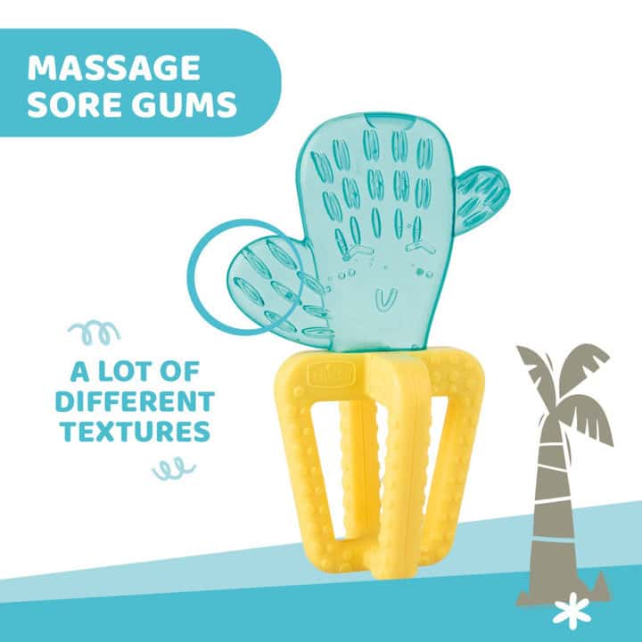 Chicco ยางกัด Fresh Teether Mix รูปทรงกระบองเพชรมีด้ามจับ 3 มิติและมีพื้นผิวสัมผัสที่หลากหลายช่วยบรรเทาอาการปวดเหงือกที่เกิดจากการงอกของฟันได้ดี