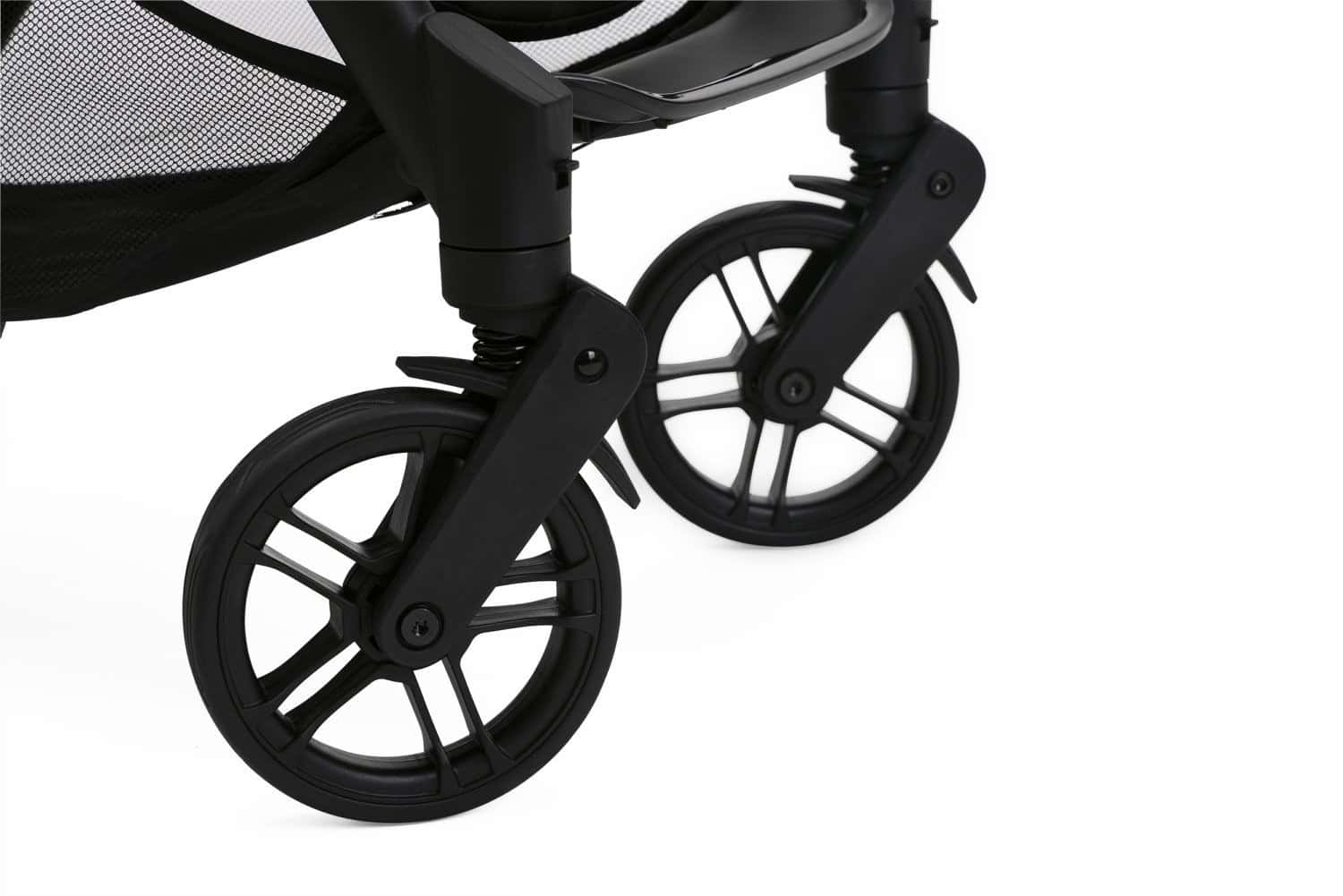 • Large wheels: shock absorbers and ball bearings on all wheels to ensure a really smooth, comfortable ride on all surfaces. Extraordinary ease of use thanks to the ball bearings in the pivoting system