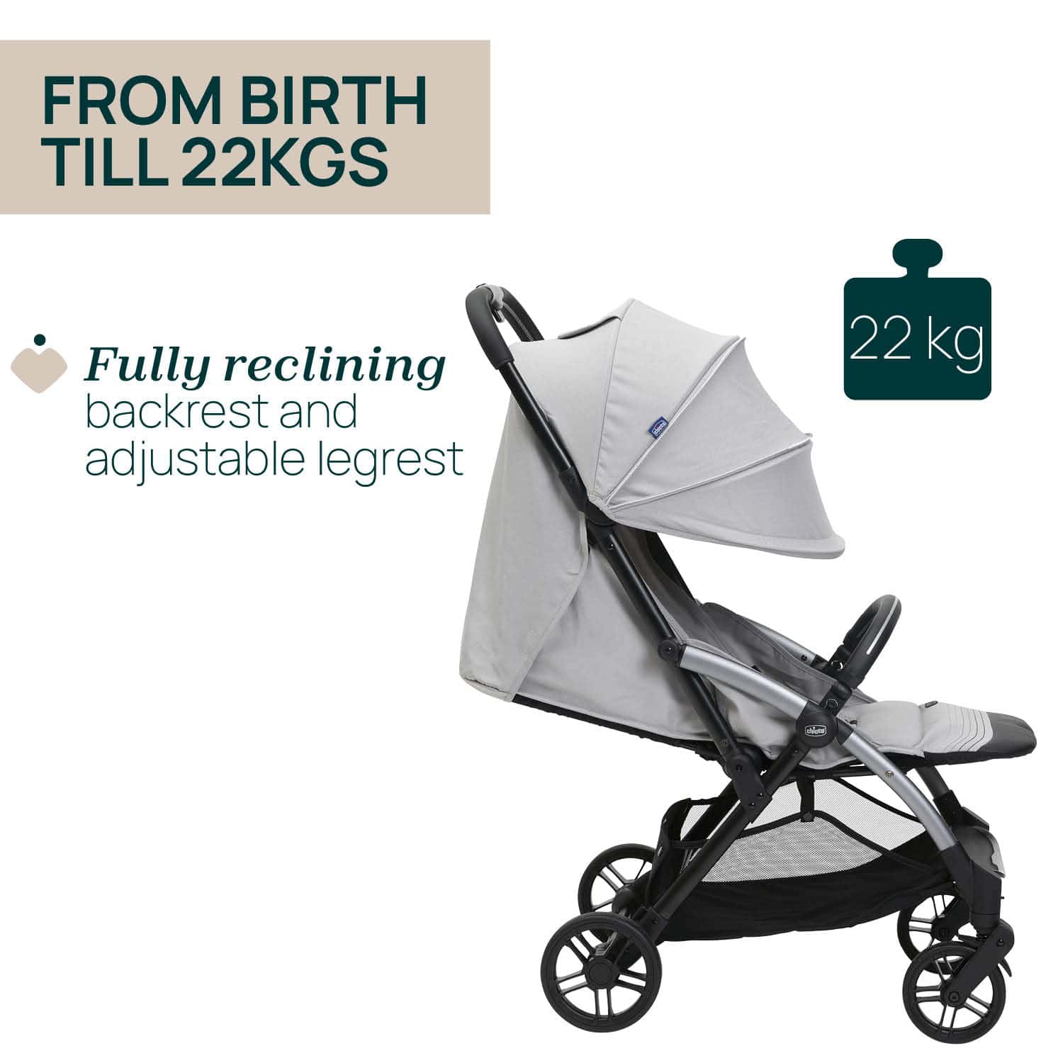 • เบาะที่นั่งกว้างและยาวขึ้น นั่งสบายรองรับน้ำหนักได้ถึง 22 กิโลกรัม (แรกเกิดถึง 4 กิโลกรัม)