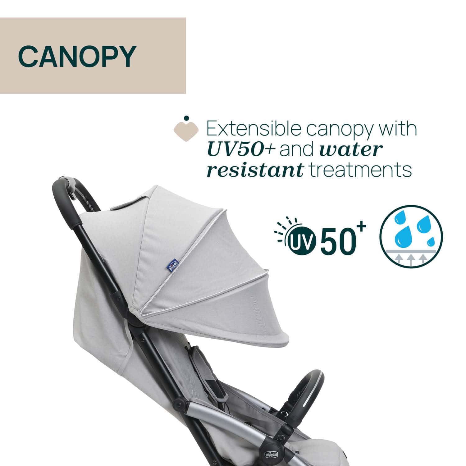 • หลังคากันแดด UV 50+ และกันน้ำได้ ขนาด XXL ปรับได้หลายระดับ พร้อมซิป เพื่อเปิดหน้าต่างสำหรับมองลูกน้อยได้ เนื้อผ้าระดับพรีเมียม ลูกนั่งสบายตลอดการเดินทาง
