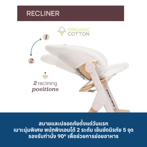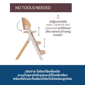 ด้วยการออกแบบที่เป็นโมดูลาร์และอุปกรณ์เสริมที่รวมมาให้ คุณสามารถเปลี่ยนเก้าอี้สูงได้อย่างง่ายดาย โดยไม่ต้องใช้เครื่องมือ การเปลี่ยนรูปแบบของเก้าอี้ทำได้ด้วยการเคลื่อนไหวที่เรียบง่ายเพียงครั้งเดียว ที่นั่งและที่เหยียบที่ปรับได้ จะเติบโตไปพร้อมกับการเจริญเติบโตของลูกน้อย ทำให้มั่นใจได้ว่าท่าทางในการรับประทานอาหารจะอยู่ใน ท่า 90 องศา ที่เหมาะสมที่สุดเสมอ เพื่อช่วยในการย่อยอาหารได้ดียิ่งขึ้น