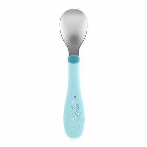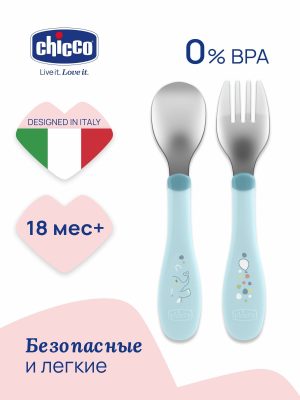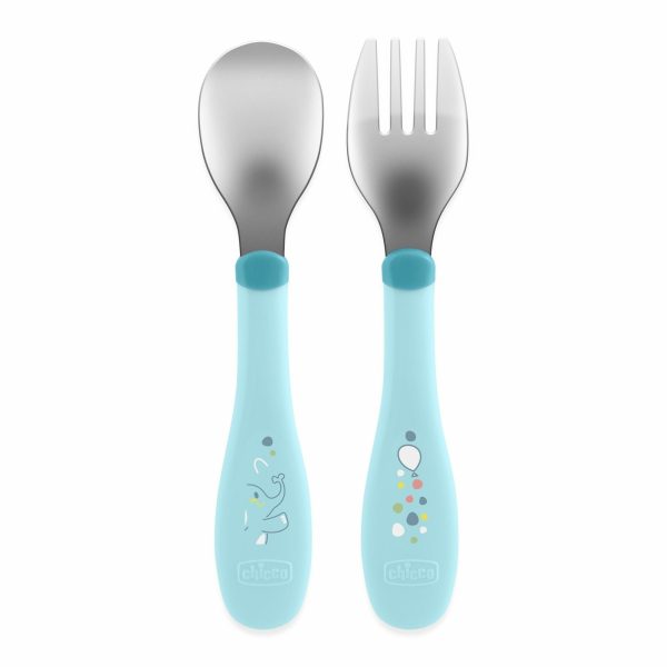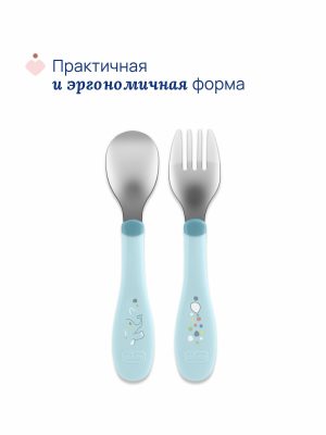 ▶️1 ช้อนส้อม Chicco Metal Cutlery (สีชมพู / สีฟ้าเทอคอยซ์)