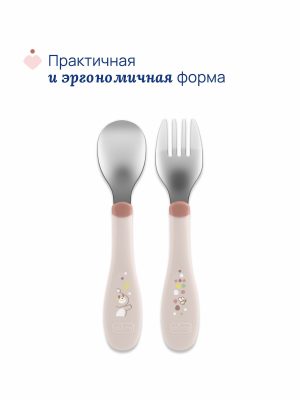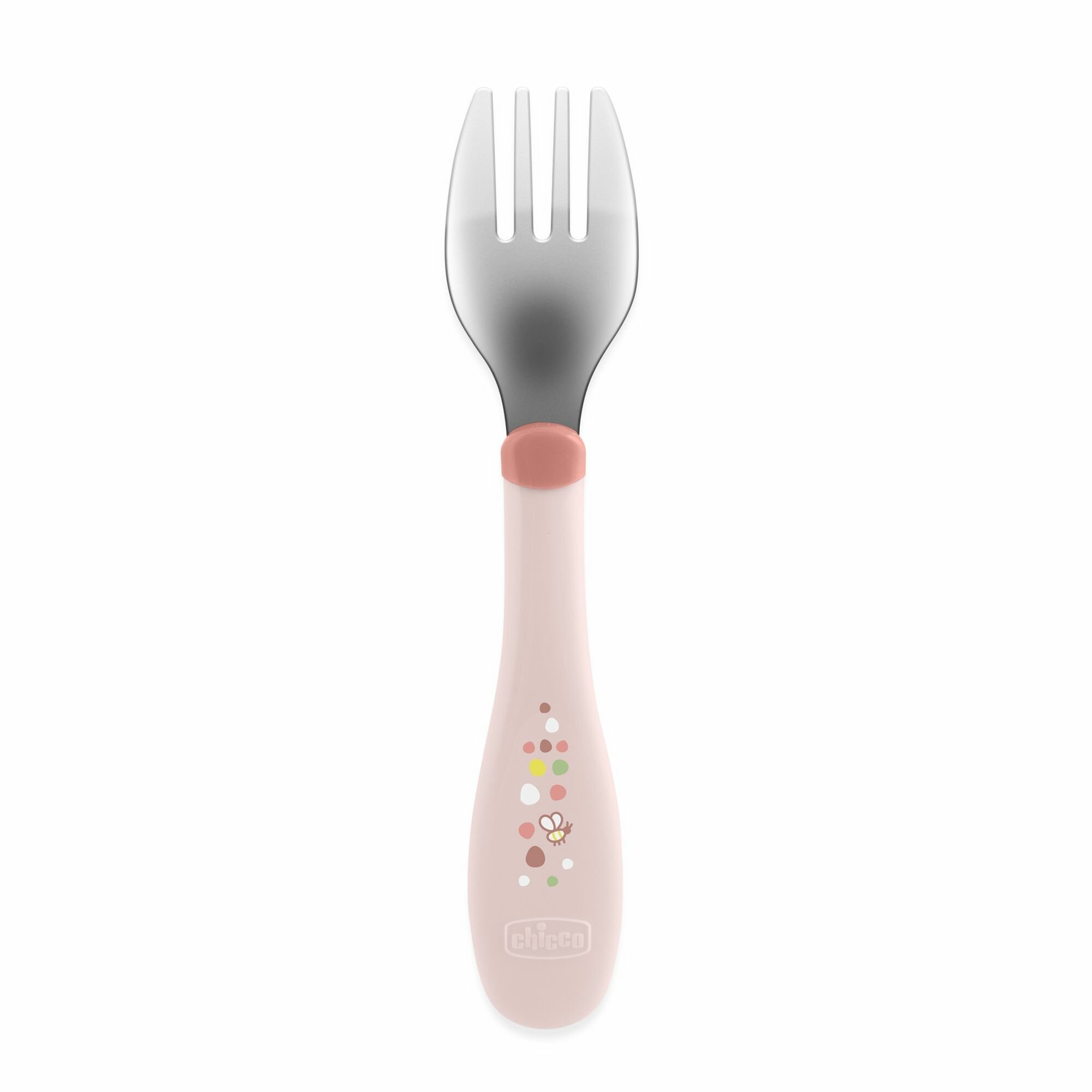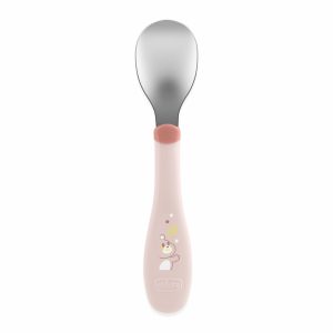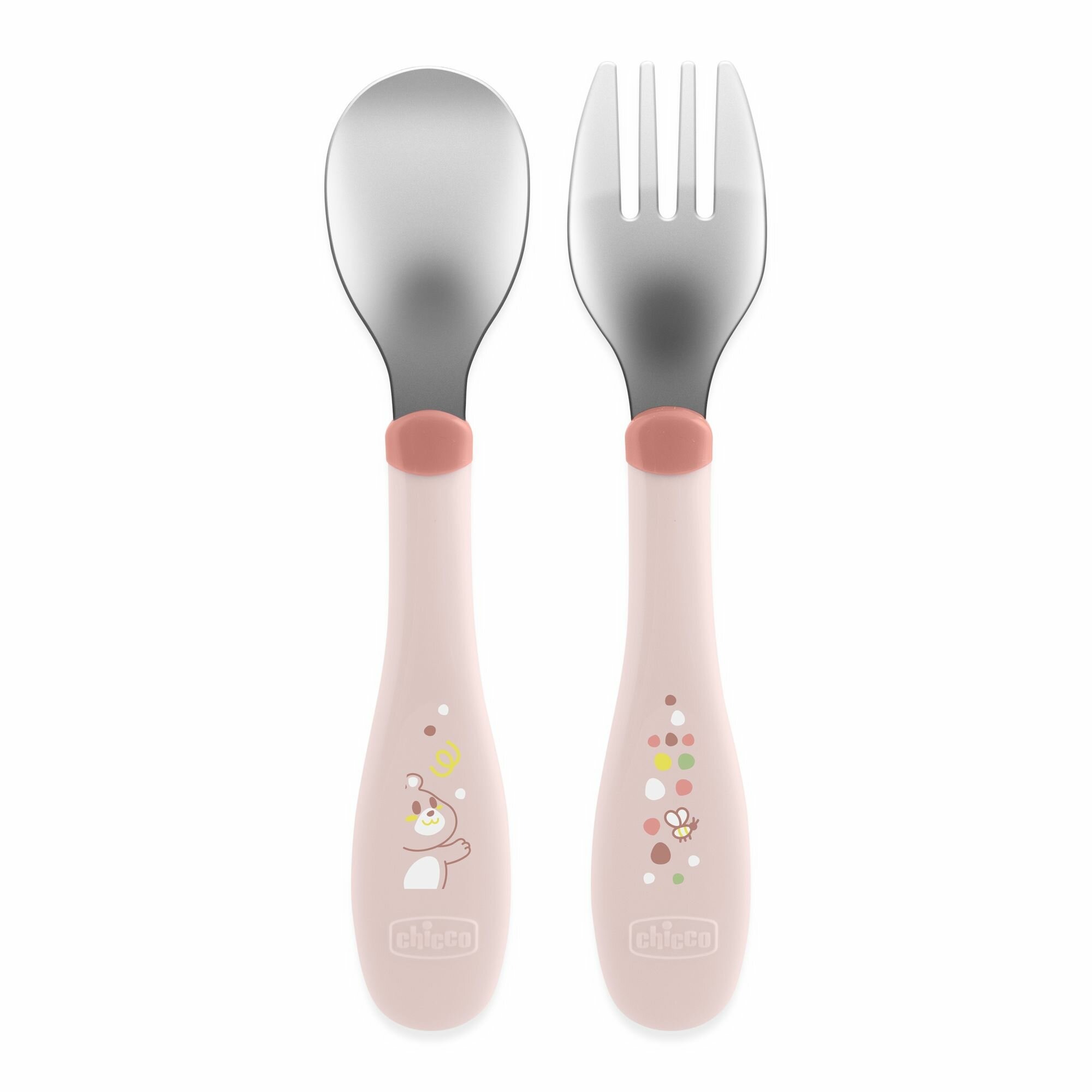 CHICCO METAL CUTLERY ชุดช้อนส้อมฝึกทานอาหารด้วยตัวเองเด็ก 18 เดือนขึ้นไป BPA-Free สีชมพู ดีไซน์น่ารัก แข็งแรง ใช้งานง่าย - Kiddo Pacific