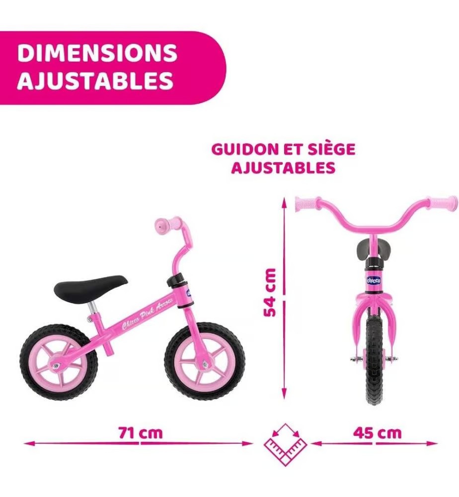 This balance bike is an ideal first bicycle that helps children to acquire the necessary balance on two wheels. Acting as a comfortable stepping stone to pedalled bicycles, this balance bike is made from ultra-light metal with adjustable handlebars and a seat to suit the child’s height.