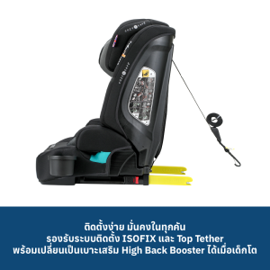 การติดตั้ง: หันหน้าไปข้างหน้า, ISOFIX และ Top Tether (เมื่อใช้เข็มขัด 5 จุด) จากนั้นใช้เข็มขัดนิรภัย 3 จุดของรถยนต์