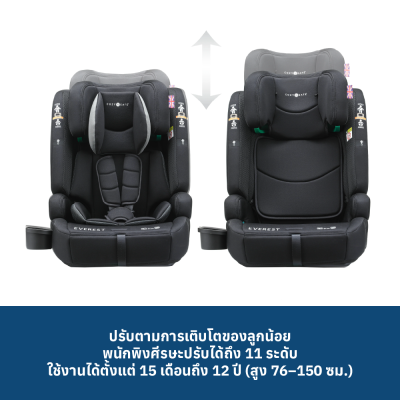 คาร์ซีท Cozy N Safe รุ่น Everest i-Size แข็งแกร่งและทนทานดุจดั่งภูเขาที่มีชื่อเดียวกัน คาร์ซีทนี้เหมาะสำหรับเด็กที่มีความสูงตั้งแต่ 76 ซม. ถึง 150 ซม. (โดยประมาณ 15 เดือน ถึง 12 ปี)