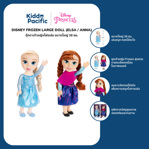 DISNEY FROZEN Large Anna & Elsa Doll ตุ๊กตาเจ้าหญิงดิสนีย์ ขนาดใหญ่ 38 ซม. ดีไซน์สวยเหมือนจริง ผมจัดทรงได้ - Kiddo Pacific