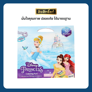 สมุดระบายสีและกิจกรรม Disney Princess เล่มนี้คือตั๋ววิเศษที่จะพาเจ้าหญิงตัวน้อยของคุณเข้าสู่โลกแห่งปราสาท, มนต์วิเศษ, และการผจญภัยอันยิ่งใหญ่ พบกับ ซินเดอเรลล่า, แอเรียล, เบลล์, มู่หลาน, ราพันเซล และเจ้าหญิงผู้กล้าหาญอีกมากมาย ที่รอให้เด็กๆ มาแต่งแต้มสีสันและไขปริศนา