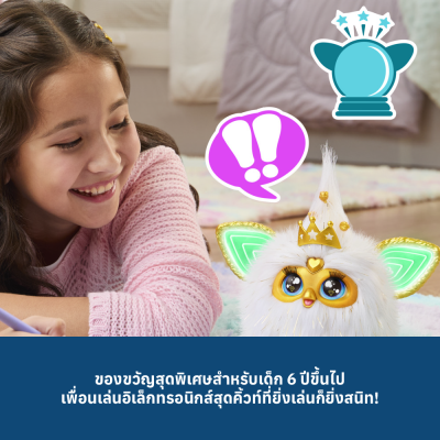 Furby ยังตอบสนองต่อการ กอด, ตบหัว, เขย่า, และให้อาหารพิซซ่าแบบเล่น (หรือใช้นิ้วของคุณ – อร่อยนะ!) ยิ่งเล่นกับ Furby มากเท่าไหร่ ก็ยิ่งปลดล็อกความสนุกได้มากขึ้นเท่านั้น!
