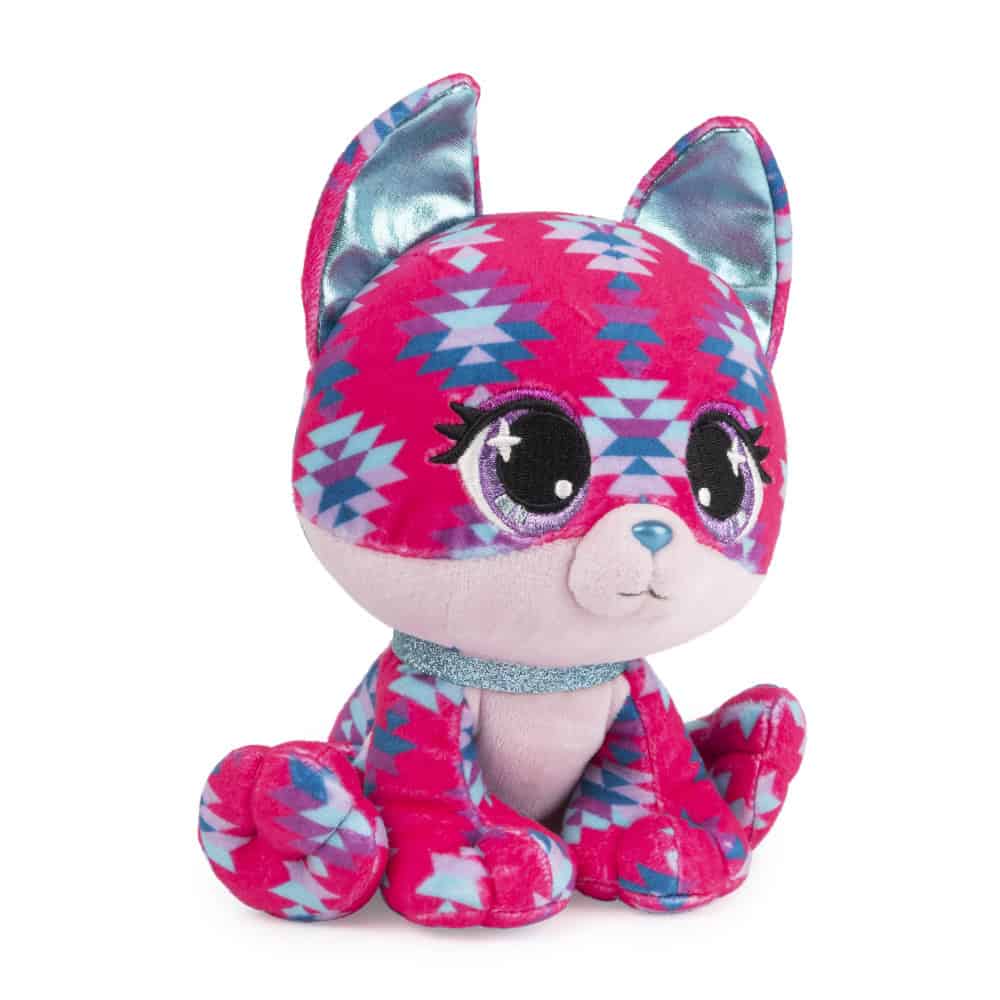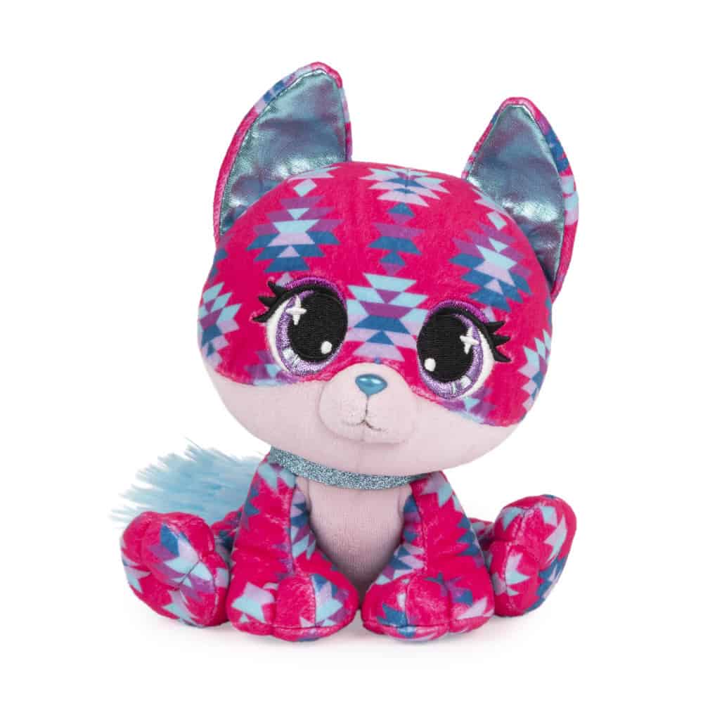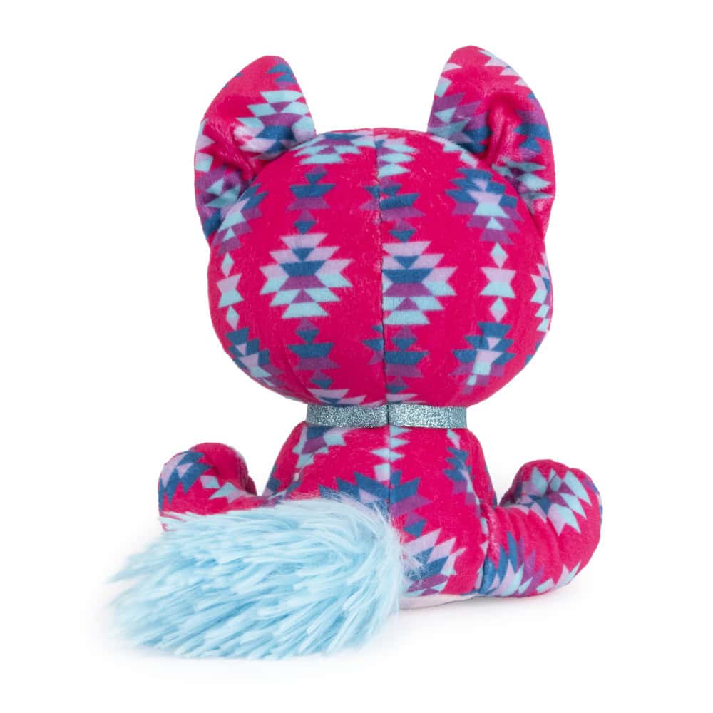 Ciera Sunset is a friendly fox who loves exploring the great outdoors. Her soft plush fur is as pink as the sky at sunset, adorned with a colorful geometric pattern. Ciera’s bright turquoise ears, nose, and sparkly collar complement her dazzling lavender eyes. In her hometown of Sedona, she can be found hiking the Red Rocks or camping under the stars.