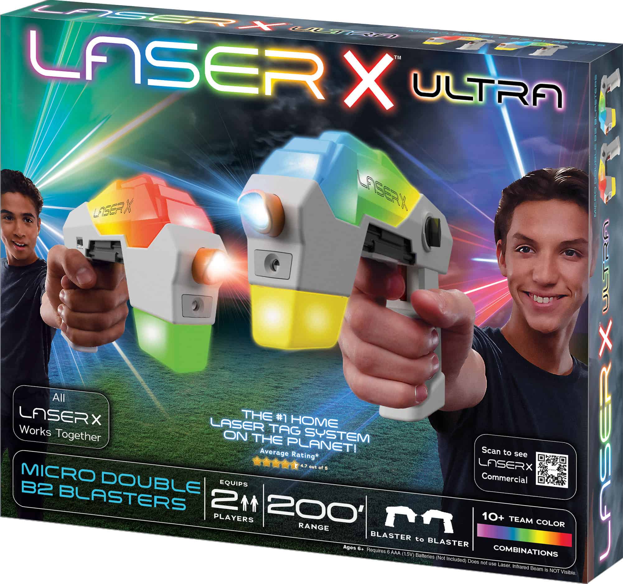 Laser X Micro B2 Blasters  เลเซอร์เป็นระบบแท็กเลเซอร์ ที่เล่นได้ในบ้านอันดับ 1 ของโลก และ สร้างสนามประลองสุดยิ่งใหญ่ได้ด้วยสวนหลังบ้านของคุณ ยิงฝ่ายตรงข้ามได้ไกลถึง 100 ฟุตทั้งด้านในและด้านนอก
