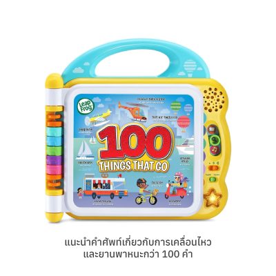 สำรวจโลกแห่งการเคลื่อนไหวและการขนส่งที่น่าตื่นเต้นด้วย LeapFrog 100 Things That Go Book! หนังสือการเรียนรู้แบบโต้ตอบนี้แนะนำเด็กอายุ 18 เดือนขึ้นไป ให้รู้จักกับคำศัพท์ที่แตกต่างกัน 100 คำที่เกี่ยวข้องกับยานพาหนะ สถานที่ และเสียงต่าง ๆ ครอบคลุมทุกอย่างตั้งแต่รถยนต์และรถไฟไปจนถึงเครื่องบินและสถานที่ก่อสร้าง