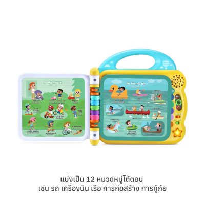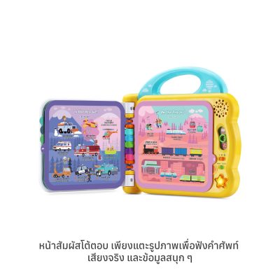 หน้าสัมผัสแบบโต้ตอบ: เพียงแค่สัมผัสรูปภาพที่มีสีสันบน 12 หน้าที่ทนทานและทำความสะอาดง่าย เพื่อฟังคำศัพท์ เอฟเฟกต์เสียงที่สมจริง และข้อเท็จจริงสนุก ๆ เกี่ยวกับสิ่งของแต่ละชนิด