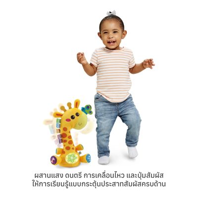 เพื่อนเต้นรำแบบโต้ตอบ: ยีราฟจะ ขยับคอและลำตัว ตามจังหวะดนตรี กระตุ้นให้เด็ก ๆ เลียนแบบการเคลื่อนไหวและส่งเสริมทักษะยนต์หยาบ