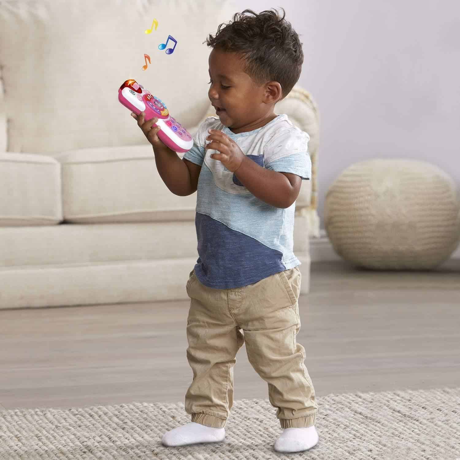 • Role-play excitement Keep little ones entertained in a big way with a pretend-play remote that introduces numbers, shapes and first words.