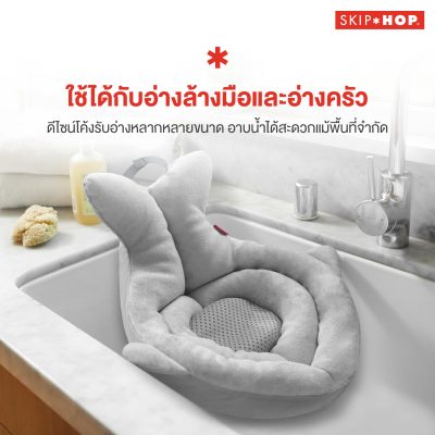 เบาะอาบน้ำสำหรับทารกแรกเกิด ดีไซน์ปลาวาฬ Moby สีเทาเรียบสวย จาก Skip Hop ผลิตจากโฟมนุ่ม ช่วยรองรับสรีระลูกน้อยขณะอาบน้ำ ใช้งานร่วมกับอ่างล้างหน้าได้อย่างสะดวก ปลอดภัย และสบายตัว เหมาะสำหรับการอาบน้ำลูกน้อยในช่วงแรกเกิด