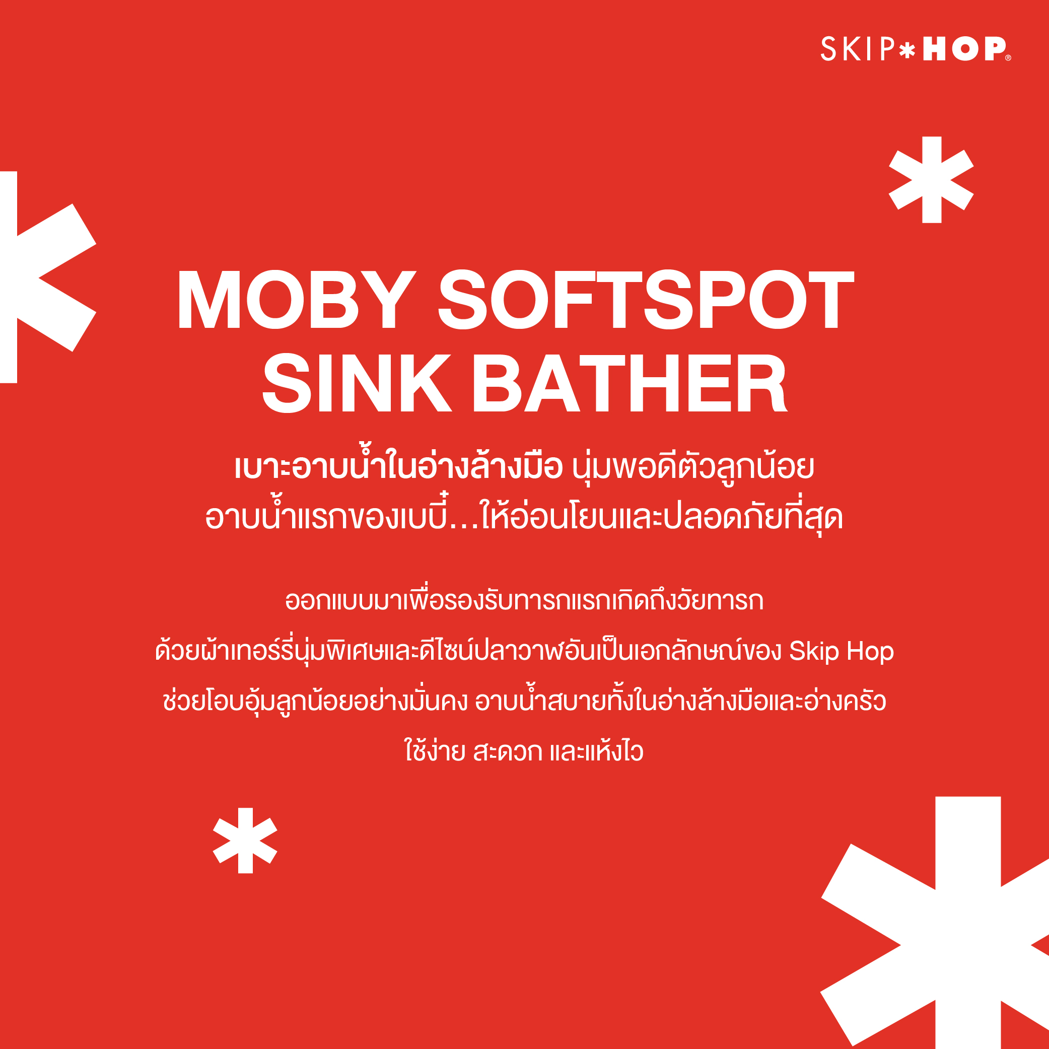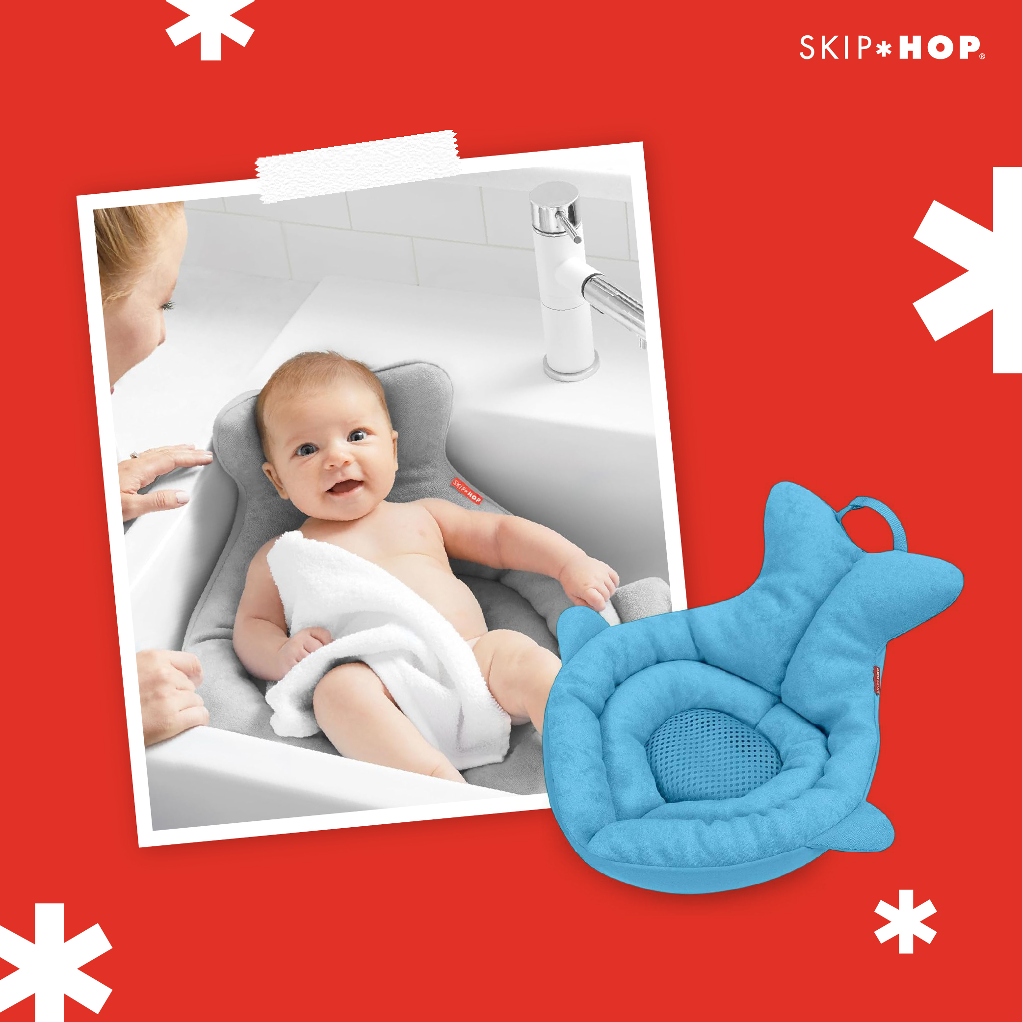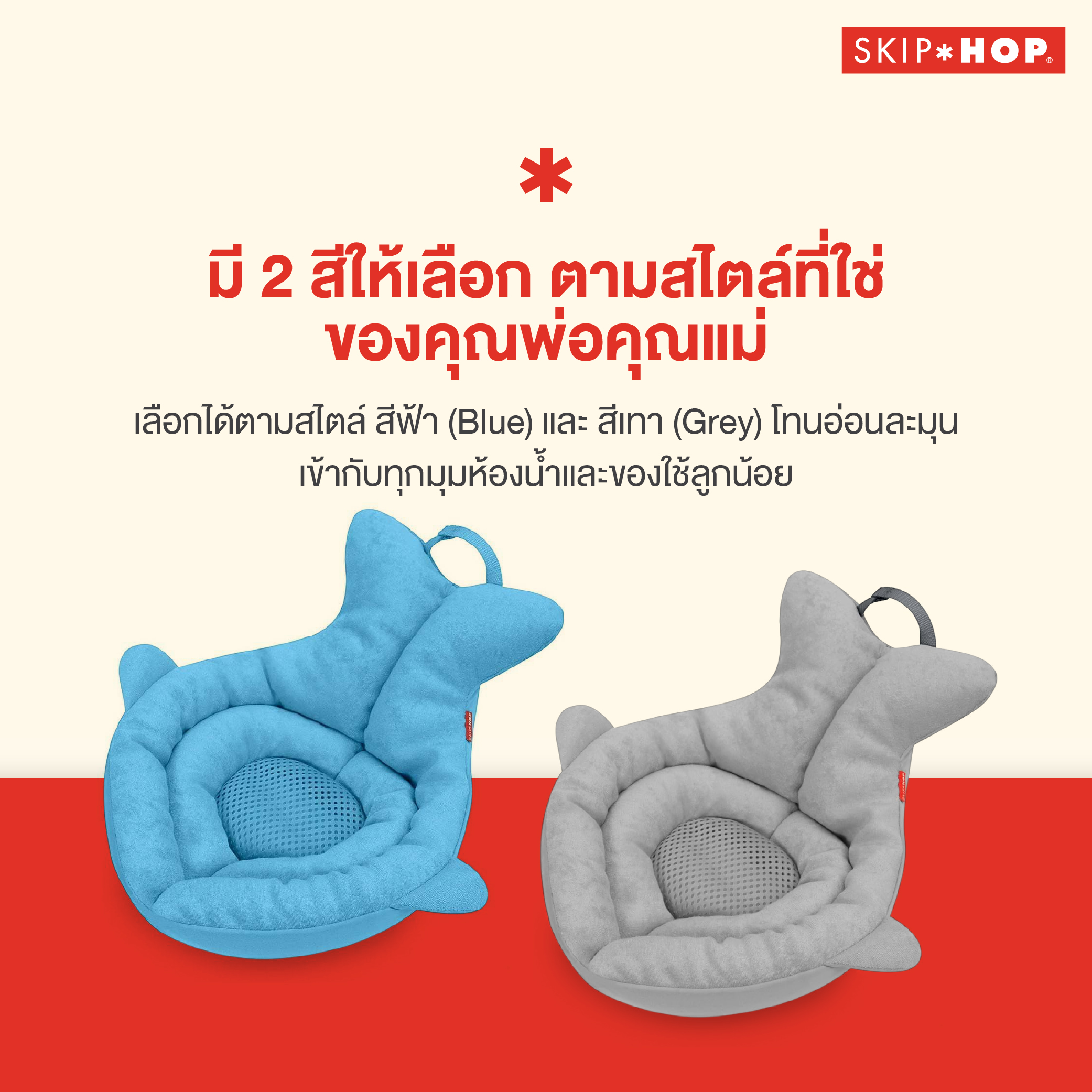 เบาะอาบน้ำสำหรับทารกแรกเกิด ดีไซน์ปลาวาฬ Moby สีเทาเรียบสวย จาก Skip Hop ผลิตจากโฟมนุ่ม ช่วยรองรับสรีระลูกน้อยขณะอาบน้ำ ใช้งานร่วมกับอ่างล้างหน้าได้อย่างสะดวก ปลอดภัย และสบายตัว เหมาะสำหรับการอาบน้ำลูกน้อยในช่วงแรกเกิด