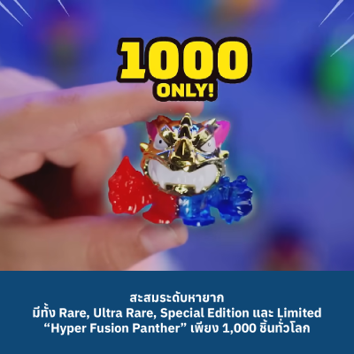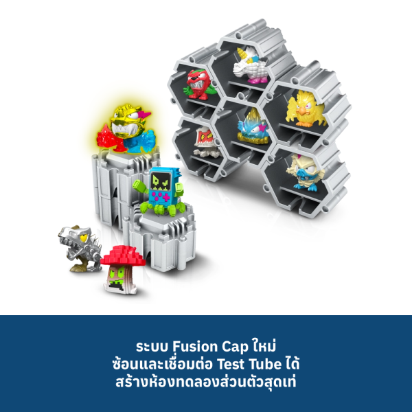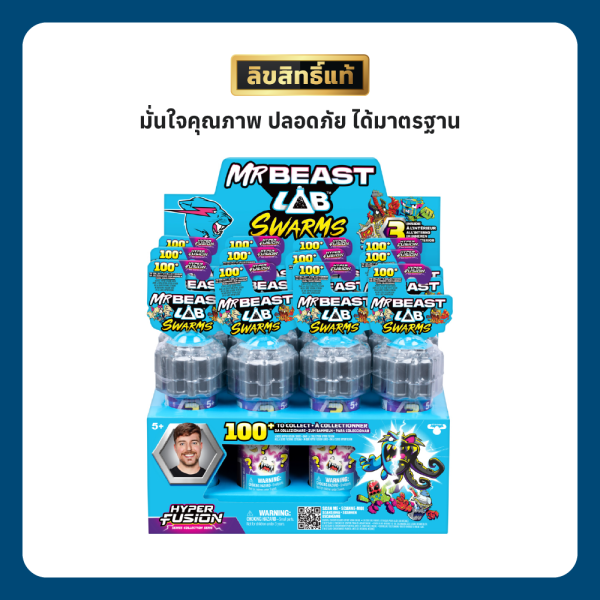 MrBeast Lab Swarms ได้ถูก ‘Hyper Fused’ เพื่อสร้างการผสมผสานที่บ้าคลั่งที่สุดจนถึงตอนนี้ โดยมีการผสมผสานที่บ้าคลั่งของลาวา น้ำแข็ง โลหะ และแม้แต่ขนม—ทั้งหมดก่อให้เกิดความวุ่นวายในห้องทดลองและรอคอยที่จะถูกค้นพบ! มี Hyper Fusion Swarms ที่ยิ่งใหญ่และไม่ซ้ำกันมากกว่า 100 แบบ ขนาด 1 นิ้ว (2.5 ซม.) ให้สะสม รวมถึง: แบบหายาก แบบหายากมาก แบบฉบับพิเศษ และสิ่งที่ผู้คนต้องการมากที่สุด Limited Edition Hyper Fusion Panther ที่ถูกหลอมรวมเข้ากับองค์ประกอบที่แตกต่างกัน 3 แบบ! แต่รีบหน่อย เพราะมีเพียง 1,000 ชิ้นเท่านั้นของ Hyper Fusion Panther ที่มีให้ใน MrBeast Lab Series ใหม่! สิ่งใหม่ใน Hyper Fusion Series คือการเปิดตัวสติกเกอร์ EPIC Hyper Fusion! แต่ละแพ็คมาพร้อมกับสติกเกอร์ Swarm แบบพิเศษที่จะถูกนำไปติดในคู่มือสะสม ลูกของคุณจะเก็บสติกเกอร์ทั้งหมดเพื่อทำให้คอลเลกชันสติกเกอร์สมบูรณ์หรือไม่? Test Tube Pack ตอนนี้มี Micro Beasts ลึกลับ 3 ตัวอยู่ข้างใน เช่นเดียวกับสติกเกอร์ Hyper Fusion 3 แผ่น! นอกจากนี้ Fusion Caps ยังถูกเปิดตัวใน Hyper Fusion Series เด็กๆ สามารถซ้อนและเชื่อมต่อแคปเพื่อเชื่อมต่อและจัดแสดงคอลเลกชันของพวกเขาเพื่อสร้าง MrBeast Lab ของตัวเอง! Test Tube Pack มี Fusion Cap 1 ชิ้น แต่สามารถขยายการจัดแสดงของคุณด้วยการซื้อแพ็ค MrBeast Swarms เพิ่มเติม ขยายความโกลาหลของ Hyper Fusion ด้วยความสามารถใหม่ทั้งหมดในการสร้างและจัดแสดง MrBeast Lab Hyper Fusion Collection ของคุณวันนี้! และอย่าลืมตรวจสอบการแสดงทั้งหมดของ Swarms บน YouTube กับการเปิดตัวของเนื้อหาอนิเมชัน MrBeast Lab ใหม่ล่าสุดและดู Swarms สร้างความโกลาหลออนไลน์!
