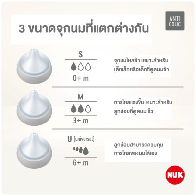 ขนาด M (ความจุ 260 มล.): สำหรับ 3 เดือนขึ้นไป, เหมาะสำหรับนมผง/นมผสม