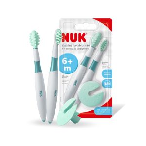 The NUK Training Toothbrush Set provides a perfect, step-by-step introduction to independent oral hygiene, getting your child used to the habit of cleaning their teeth even before their first teeth appear.