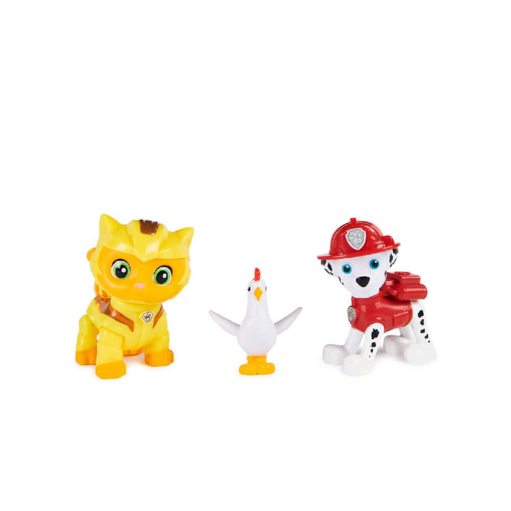 ฟิกเกอร์มาจากภาพยนตร์ Paw Patrol Series cat pack มาพร้อมกับอุปกรณ์เสริม เช่น ตะขอเกี่ยวของลีโอ และถังดับเพลิงของมาร์แชล ละครยังมีฉากช่วยเหลือในป่าพร้อมต้นไม้และชิงช้า