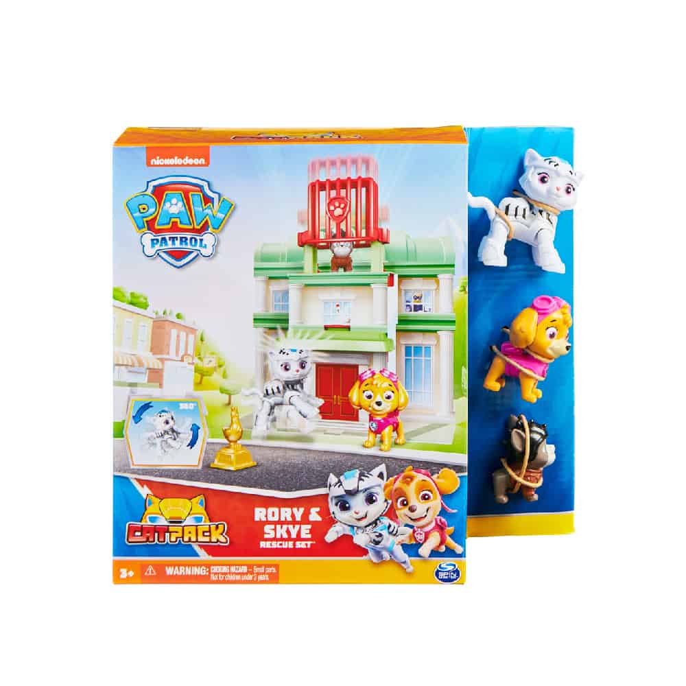 Paw Patrol Cat Pack Rory & Skye Rescue Set ความสนุกจากการสร้างฉากโปรดจากการภาพยนตร์ หรือ จินตนาการ ถึงการผจญภัยครั้งใหม่ ในชุดประกอบด้วยฟิกเกอร์สองตัวที่ ได้แก่ โรรี่ แมว และสกา ในชุดยังรวมถึงฟิกเกอร์ชิคคาเล็ตต้า และ ศาลาว่าการแอดเวนเจอร์เบย์ด้วย