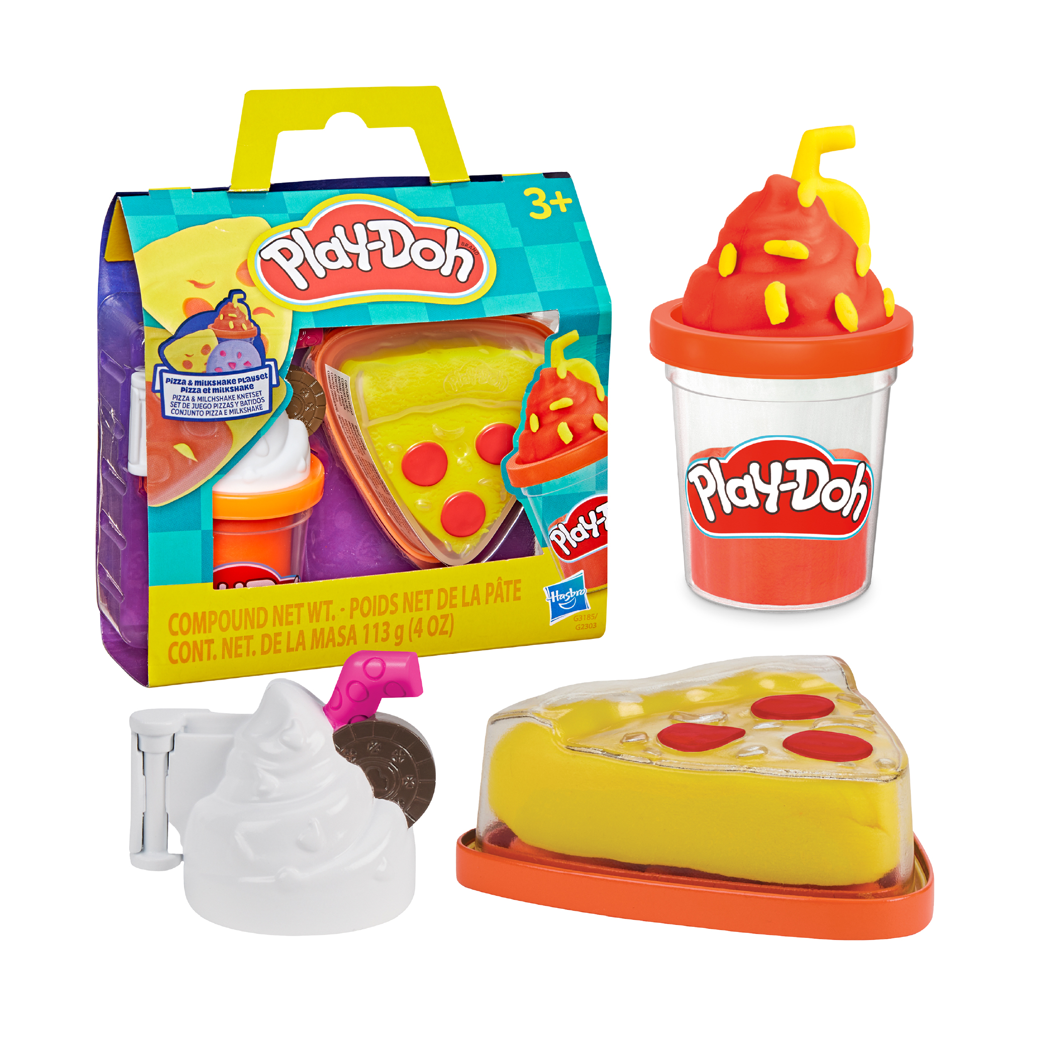 Play-Doh Treats To Go Pizza & Milkshake Playset invites kids to imagine making their own delicious pizza and milkshakes with colorful Play-Doh compound. Children can shape, decorate, and create fun pretend treats while developing creativity and fine motor skills. This imaginative playset is perfect for pretend food play and makes a fun gift for kids ages 3 and up.
