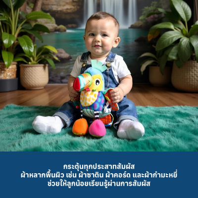 เท้าที่มีเสียงกระดิ่ง และ เท้าที่มีเสียงกรอบแกรบ กระตุ้น ประสาทสัมผัสทางการได้ยิน แผงคอและหางที่เป็นผ้าซาติน และ ลำตัวที่เป็นผ้ากำมะหยี่ ของสเตลล่า ชักชวนให้ลูกน้อยสัมผัสและ สัมผัสประสบการณ์พื้นผิวที่แตกต่างกัน