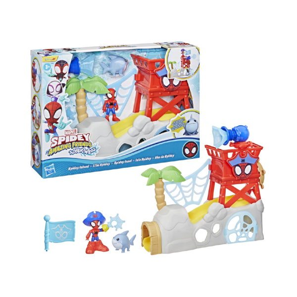 เด็กๆ สามารถจินตนาการถึงการผจญภัยและการต่อสู้อย่างโจรสลัดกับชุดของเล่น Marvel Spidey and his Amazing Friends Water-Webs Spidey Island จาก Hasbro! ชุดนี้มาพร้อมฟิกเกอร์ Spidey ขนาด 3 นิ้ว (7.6 ซม.) ที่ขยับได้ และฟิกเกอร์ Jeff the Landshark สุดน่ารัก พร้อมฟีเจอร์สนุกๆ อย่างประตูกับดักพร้อมสไลเดอร์ ถ้ำลับสำหรับจับตัว และอื่นๆ อีกมากมาย