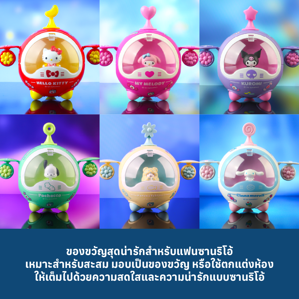 ซีรีส์ SANRIO FAMILY CAPSULE TOYS SPACESHIP SERIES เป็นคอลเลกชันของเล่นแคปซูล ที่นำตัวละครซานริโอ้สุดคลาสสิกมาสู่การผจญภัยในธีมอวกาศและยานอวกาศสุดน่ารัก เหมาะสำหรับนักสะสมที่ชื่นชอบความแปลกใหม่และความสนุกในการลุ้น