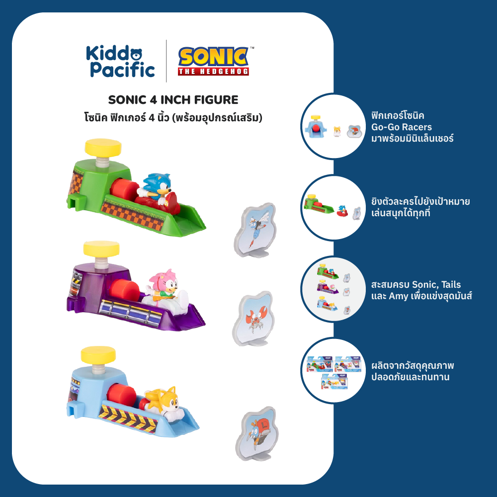 🦔SONIC Sonic Go-Go Racers : Sonic ผู้เร็วกว่าความเร็วเสียง – หยุดอาชญากรรม ช่วยโลก และยังดูเท่เสมอ! พบกับ Sonic Go-Go Racers ใช้ Mini Launcher เพื่อส่ง Sonic พุ่งไปยังเป้าที่ให้มา สะสมให้ครบเพื่อเชื่อมต่อและแข่งกับเพื่อน ๆ อย่าง Tails และ Amy ในการผจญภัยสุดมันส์!