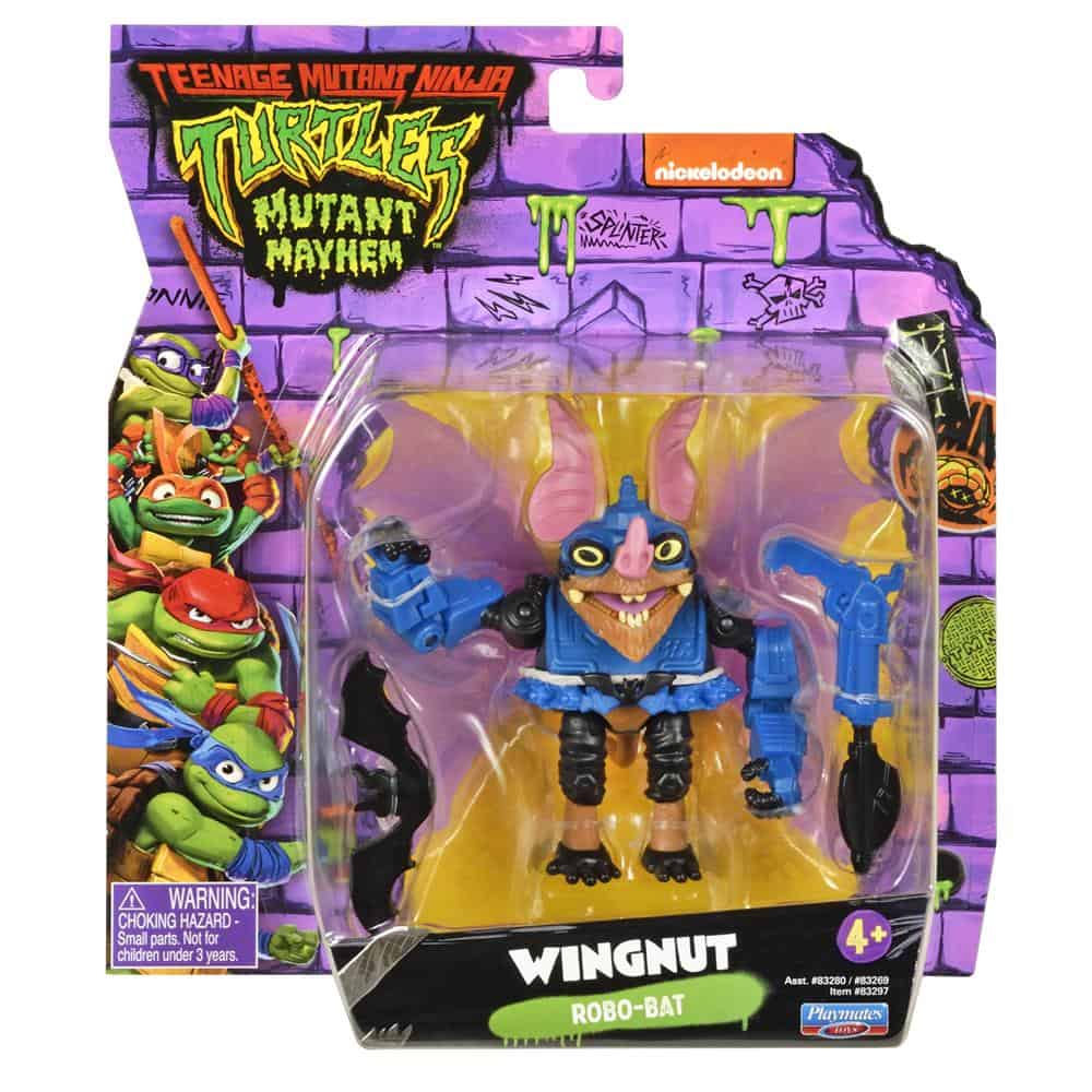 Get ready for Mutant Mayhem with the incredible figures and accessories inspired by the new CG animated Teenage Mutant Ninja Turtles movie. Wingnut is meticulously crafted with individual sculpting and decorations to capture the essence of the character from the film. With multiple points of articulation, you can pose them for epic battles. Each figure comes in a beautifully designed blister card package featuring bold TMNT Mutant Mayhem branding. Don’t miss out – collect all the TMNT Mutant Mayhem action figures and accessories from Playmates Toys, your ultimate Teenage Mutant Ninja Turtles Toy Headquarters!