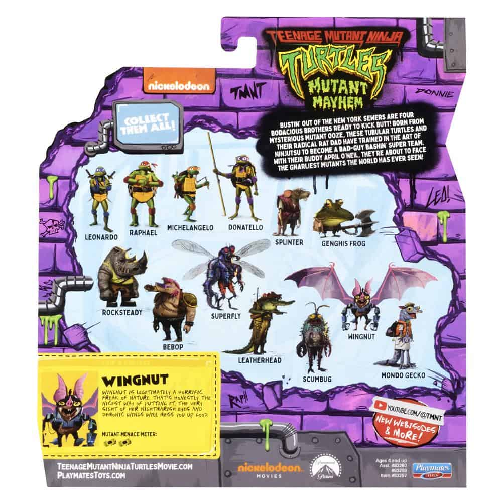 TMNT MOVIE BASIC FIGURE ฟิกเกอร์ WINGNUT และอุปกรณ์เสริมที่น่าทึ่งซึ่งได้รับแรงบันดาลใจจากภาพยนตร์แอนิเมชั่น CG เรื่องใหม่ Teenage Mutant Ninja Turtles Wingnut