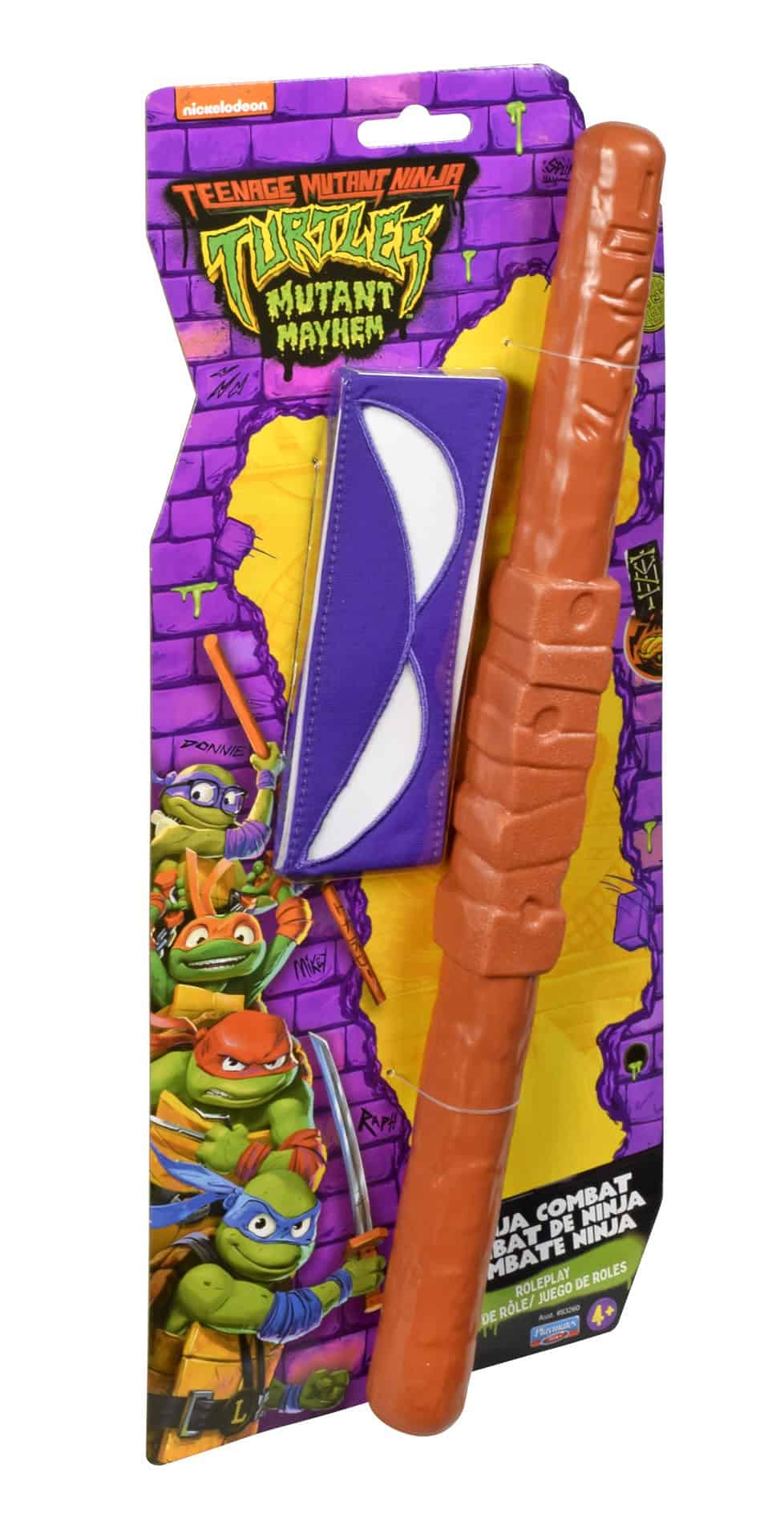 Transform yourself into the “Brainiac” Donatello from the hit Teenage Mutant Ninja Turtles Mutant Mayhem movie with Donatello’s Ninja Reveal Role Play set! Tie on Donnie’s violet purple bandana, grab his powerful Ninja Reveal Bo Staff and throwing star and, in an instant, you’ve become Donatello! When the baddies attack, unleash the power of Donnie’s bo staff by pressing the button and flicking your wrist—the bo staff extends and is ready for battle! When the battle’s won, simply slide staff back into the handle and you’re ready for the next fight!