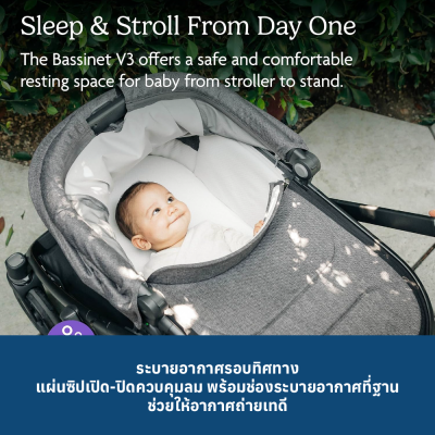 Transform your Vista, Cruz into a safe and stylish pram ideal for your newborn. Whether for naps on the go or overnight sleeping, our Bassinet allows your baby to lie completely flat. The Bassinet V3 has enhanced features including greater ventilation, easy access to baby, and a breathable mattress for safe sleep.