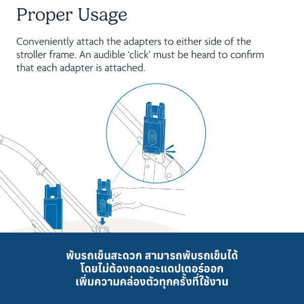 พับเก็บสะดวก: สามารถพับรถเข็นได้เลยโดยไม่ต้องถอดอะแดปเตอร์ออก